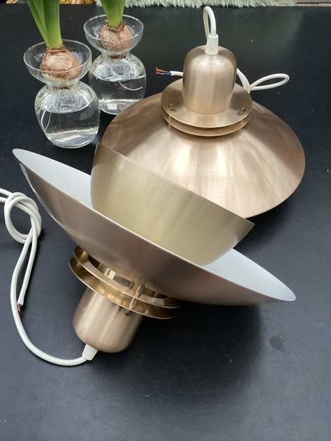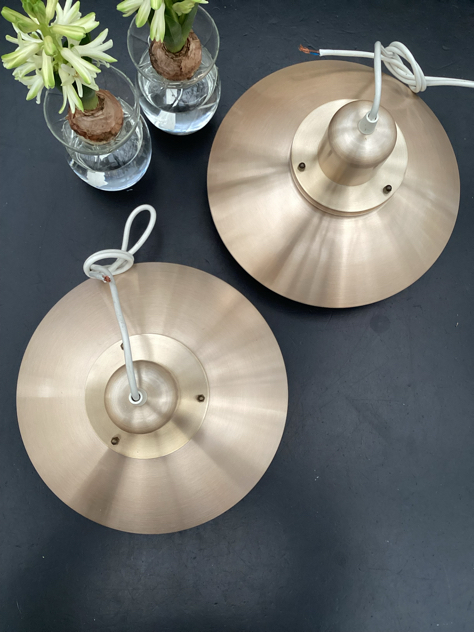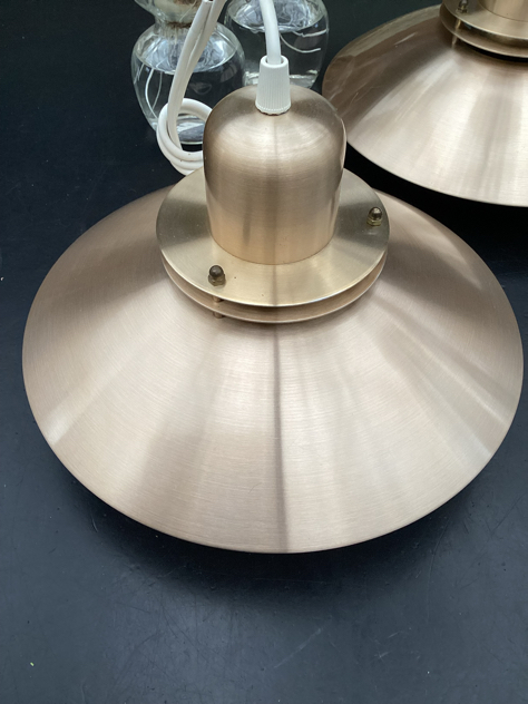 SMUKKESTE pendler i messing, har 2 stk i samme model. FLOT vintage stand på begge; FLOT form og yderst få brugsspor i form af få, små – meget overfladiske – ridser, se billeder.