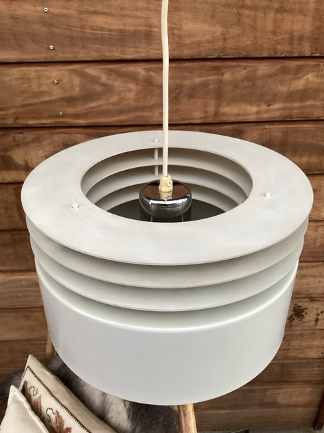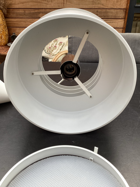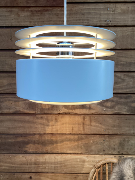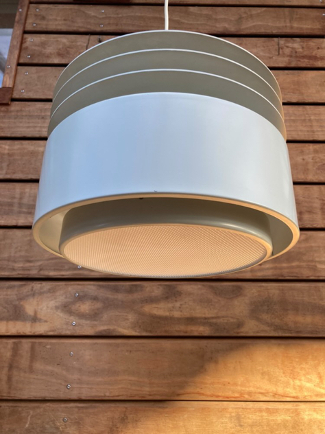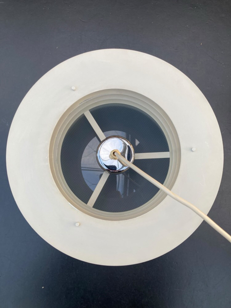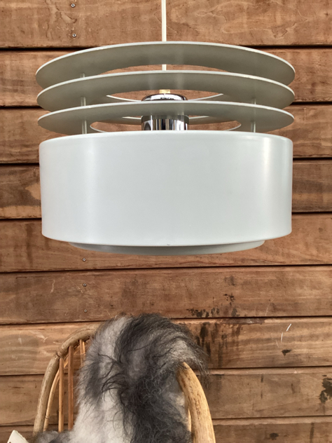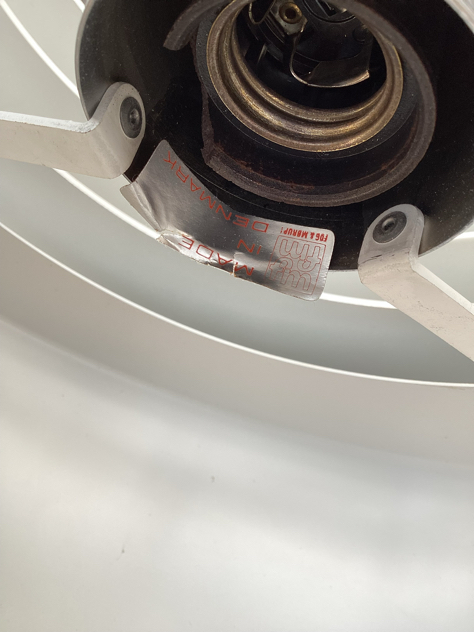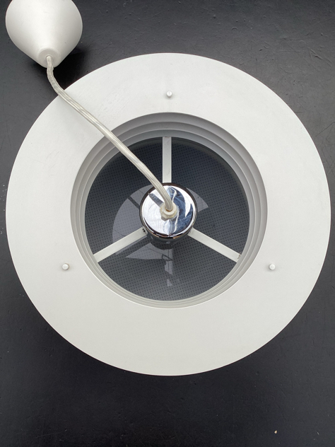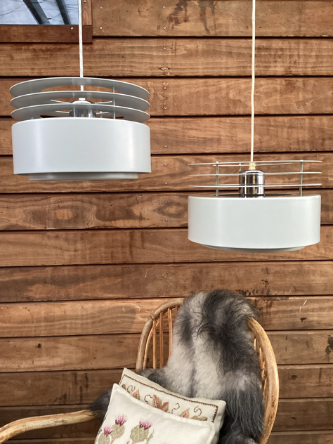 HYDRA ll: SMUKKESTE pendler – model Hydra 2 af Jo Hammerborg for Fog & Mørup, 1969. Har 2 stk, den ene med fabrikationsmærke. Begge er med bundskærm og originale bundplader.