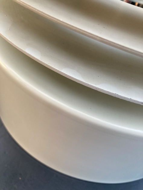 Den ene er i MEGET FLOT stand, billede 3-15:- yderst få brugsspor i form af lidt malingsskrab på kanten, se billeder. Den anden, billede 16-24 har nogle skjolder (snavs?), der muligvis kan fjernes med grundig rengøring, ikke forsøgt.