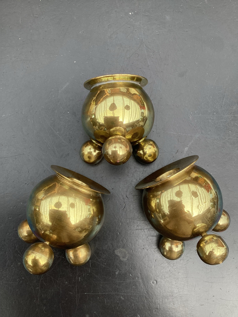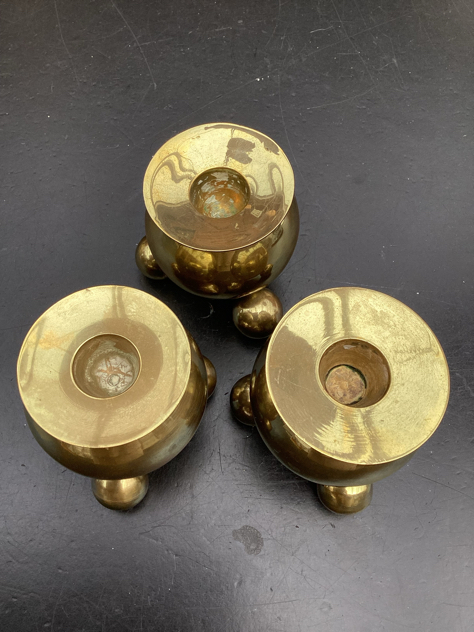 Billede 7-9: Smukke – og store – kuglestager på 3 kugleben – i messing – har 3 STK. Til almindeligt stearinlys. FLOT stand på alle. ⭐️PRIS: 150kr/stk. 3 STK/400krMÅL: H8cm og Ø8. Vejer 173-240g