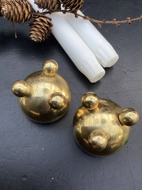 Fine kuglestager i massiv messing. Har 3 forskellige SÆT. Nogle er nypudsede, de øvrige kan givetvis pudses op, hvis du foretrækker det lyse, shiny look.