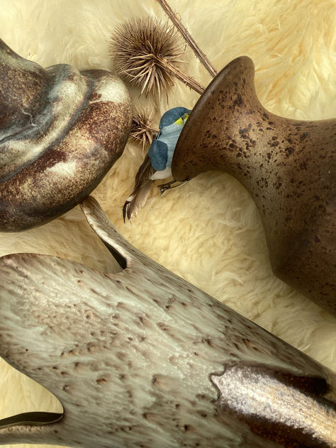 Billede 5-7: Lex Ruscha vase i herlig buttet facon. Lækker marmoreret glasur i brune og turkise toner. SÅ fin og perfekt stand; ingen skår eller revner. PRIS: 150,-