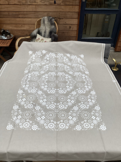 SMUKKESTE Georg Jensen damask dug. Smukt mønster, vendbart. Flot vintage stand med et par svage pletter, der ikke er forsøgt fjernet, se billeder.