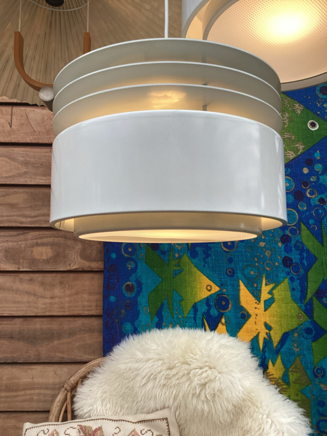 HYDRA ll: SMUKKESTE pendler – model Hydra 2 af Jo Hammerborg for Fog & Mørup, 1969, med fabrikationsmærke. Har 2 stk. Begge er med bundskærm og originale akryl bundplader, der begge har let skævhed. Flot form på begge lamper, men den ene top (der også er lidt mat) har fået en skrue/møtrik til erstatning for en nitte. Desuden let misfarvning på bundskærmen af denne og enkelte ridser på samme, se sidste billeder. Den anden er i flot stand med få brugsspor.