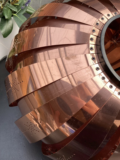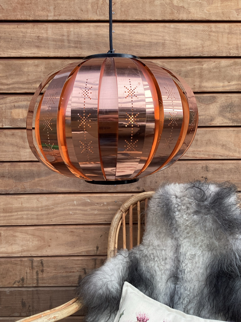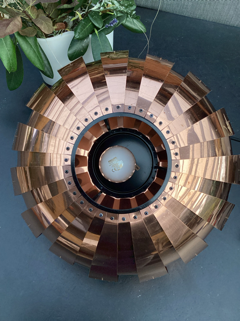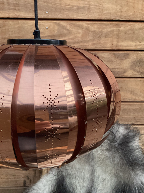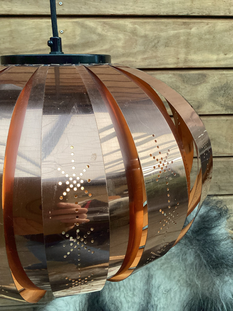 SMUKKESTE vintage pendel af Werner Schou for Coronell. Skærme i kobber med fine perforeringer, der gir den smukkeste lyseffekt.