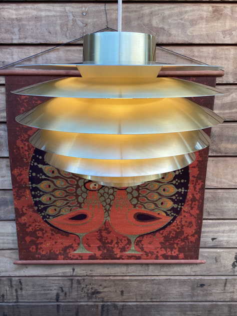 SMUKKESTE Verona pendel med 7 skærme, Ø40 cm, original i messing. Designet af Svend Middelboe for Nordisk Solar, mærke herfra.