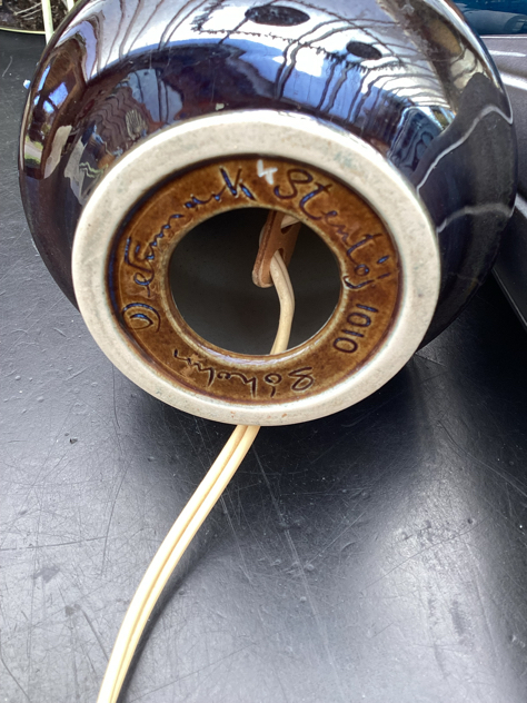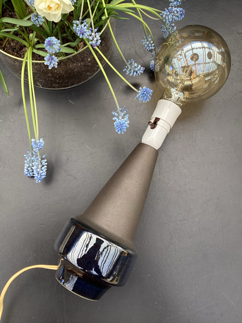 Billede 17-19: Super SMUK og enkel bordlampe i keramik. Elegant form og lækker jordbrun glasur. PERFEKT stand og virker naturligvis. Ligner Søholm på bunden, men kan ikke se signatur.