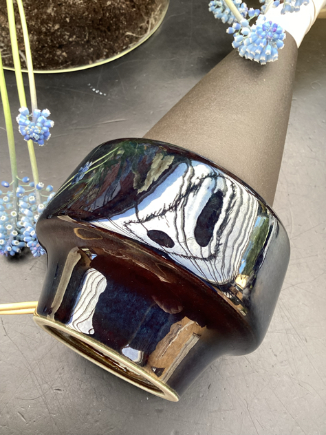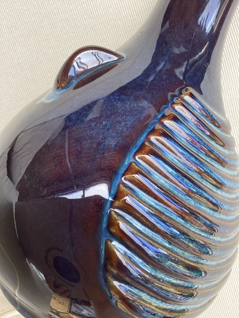 Billede 9-12: Einar Johansen, model 1010, signeret. Dyb marineblå, blank glasering med toner i mørk karamel på basen. PERFEKT stand,