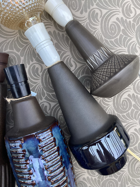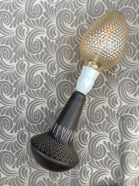 Billede 4-6: Søholm bordlampe, model 926 i brun/grå glasur med SMUKT mønster. PERFEKT stand – og virker naturligvis.