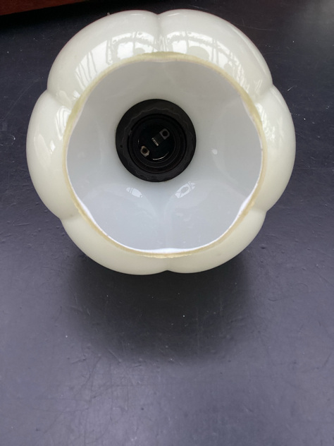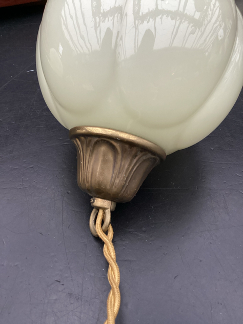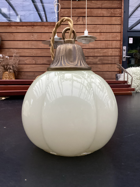FINESTE glaspendel i blank elfenbens glas m/top i patineret messing. Sødeste græskar facon